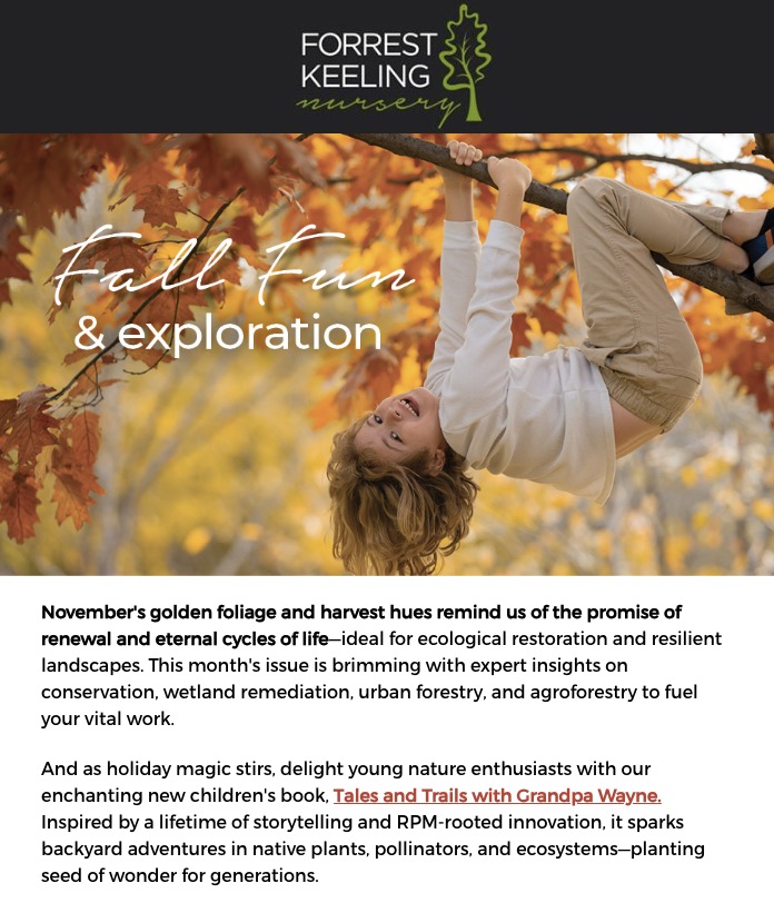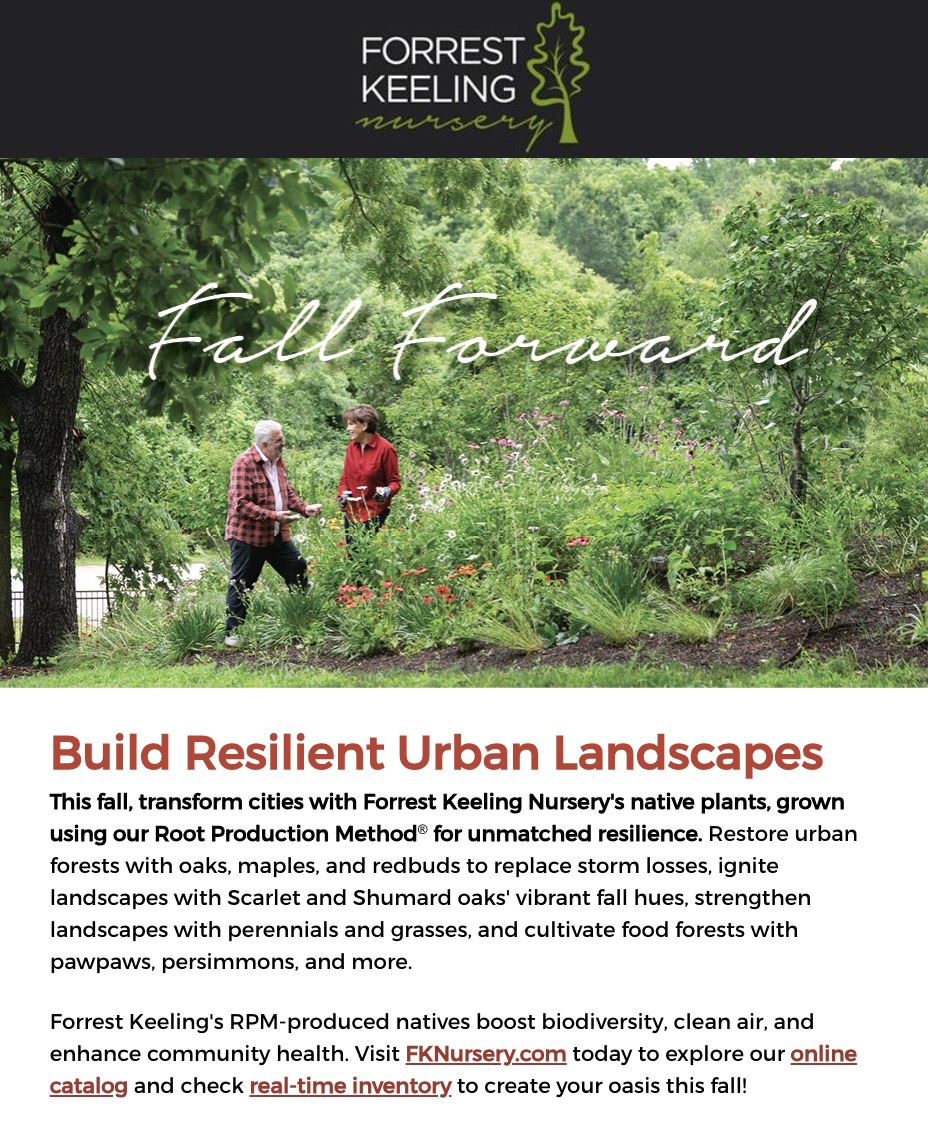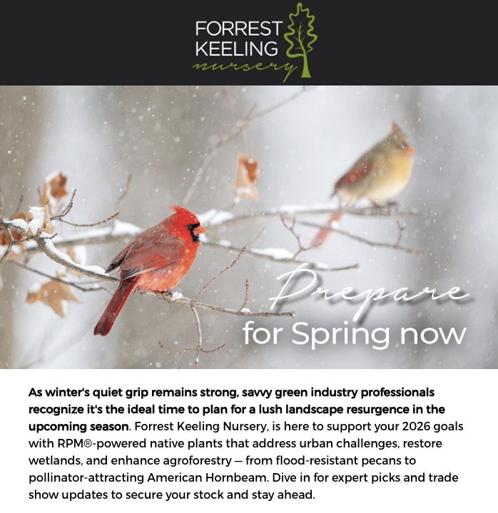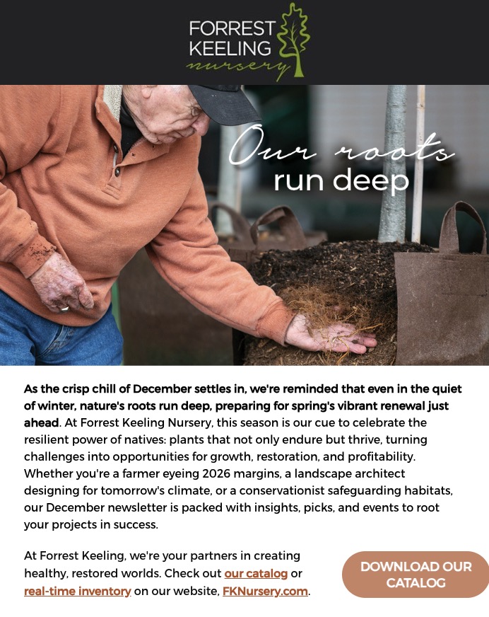 Haven’t subscribed yet? Sign up now and receive monthly updates and promotions from Forrest Keeling Nursery.